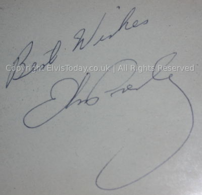 This is a very good example obtained by a close friend during the British Fan Club's first trip to Las Vegas to see Elvis in concert at the Hilton Hotel in August 1972. There is a lovely story surrounding the circumstances of how the signature was obtained. More detailed background can be found in the Elvis Monthly article describing how Rod and Rita bumped into the Colonel out in the lobby of the hotel and this chance meeting led to the Colonel inviting the lucky fans up to Elvis's personal suite where this signature was obtained. I was given this item as a birthday present some 20 years ago, and this remains a treasured item in my personal collection.